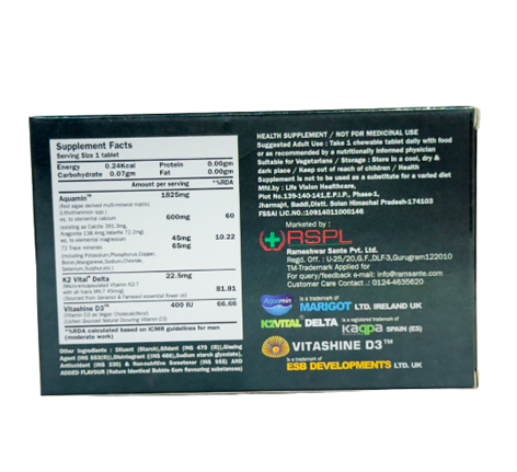 Other Ingredients : Diluent (Starch),GlIdant (INS 470 (III)),Glazing Agent (INS 553(III)),Disintegrant ((INS 466),Sodlum starch glycolate), Antioxidant (INS 330) & Non-nutritive Sweetener (INS 955) AND ADDED FLAVOUR (Nature Identical Bubble Gum flavouring substances)